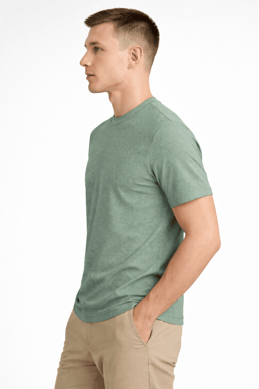 Renueva tu look diario con esta camiseta de hombre manga corta de diseno moderno y acabado texturizado. Su confeccion en tejido tipo jersey brinda una sensacion comoda y ligera, ideal para acompanarte durante todo el dia. El color Silver Blue, un tono celeste grisaceo suave, aporta un estilo versatil que combina facilmente con jeans, bermudas o joggers. Gracias a su diseno liso y cuello redondo clasico, es una prenda practica para outfits casuales, urbanos y relajados. Su textura visible le da un detalle diferenciador frente a una camiseta basica tradicional, logrando una prenda comoda, funcional y con mejor presencia visual para el uso cotidiano.
