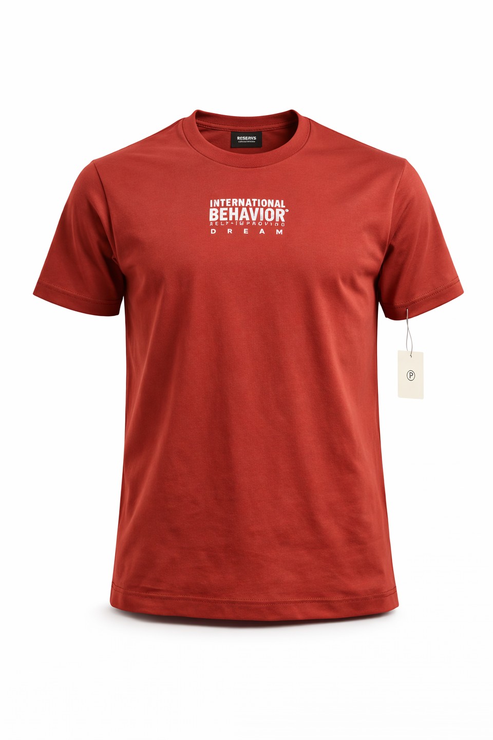 Renueva tu estilo con esta camiseta para hombre de la marca Reserved, confeccionada en suave tejido jersey que brinda una sensacion ligera y comoda durante todo el dia. Su color rojo vibrante aporta un toque moderno y llamativo, mientras que el estampado frontal “International Behavior Dream” le da un estilo urbano y actual. Gracias a su corte clasico y manga corta, es perfecta para uso diario y para combinar con jeans, shorts o joggers.