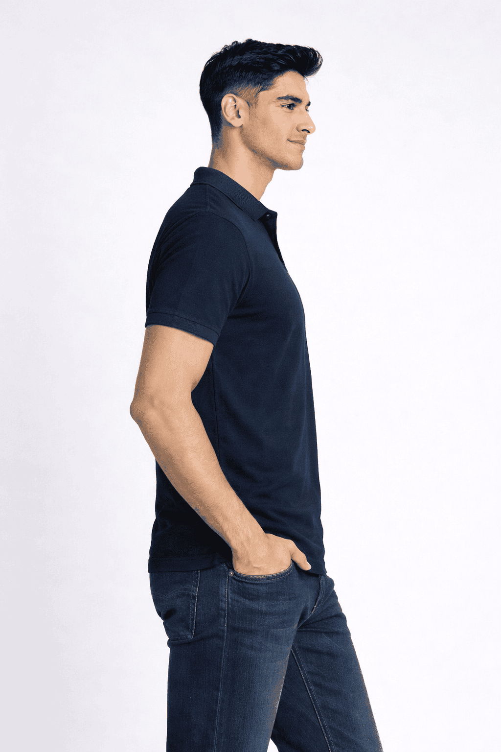 Tipo de tela: Algodón piqué (tejido tipo polo) con grano fino, estructura marcada y acabado mate natural