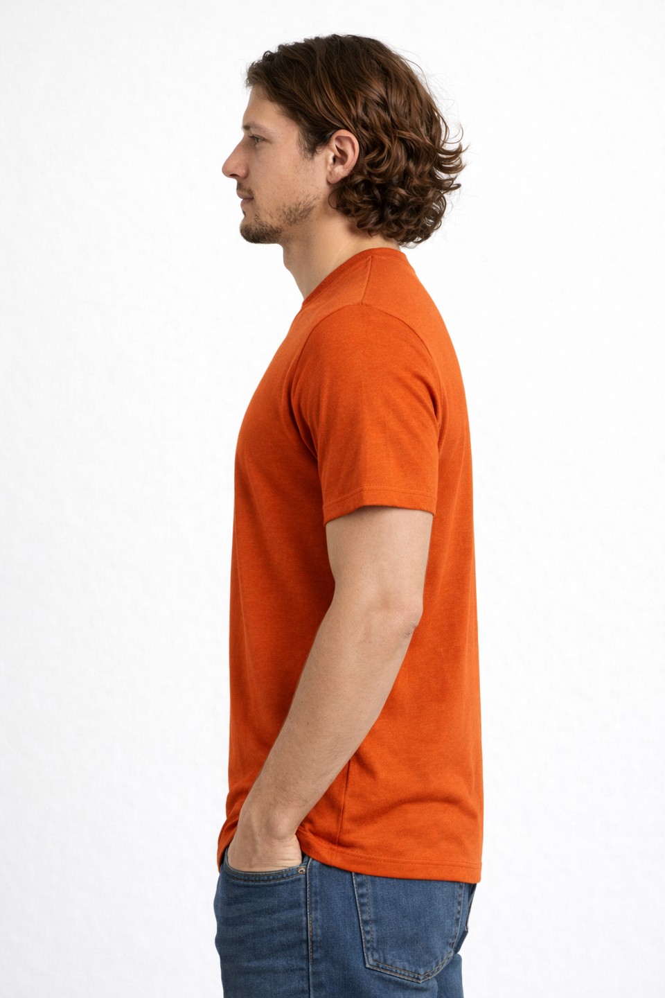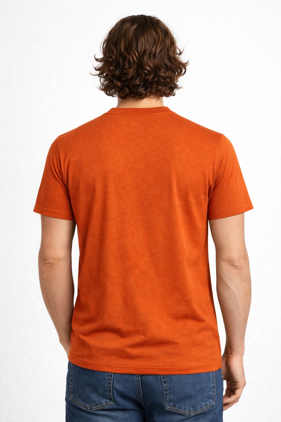 Camiseta de manga corta Lighthouse Basics en tono naranja terracota con acabado garment dyed y estampado frontal moderno. Ideal para un look casual cómodo y con estilo.